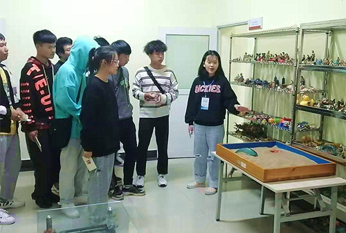 来自学生社团心理咨询部的解说员们带领新生们依次参观了预约接待室、沙盘游戏室、个体咨询室、心理宣泄室、团体辅导室。“沙盘游戏采用了心理映射技术,借助不同的沙具唤起童心,将心中的图画构建在沙盘上,以此来表达自己,展示内心世界。”同学们纷纷尝试着摆放模型,动手体验。从解说员的介绍中,新生们全面了解到心理健康教育中心的职能:在个体心理咨询室,学生们掌握了心理咨询预约的基本流程,并了解了咨询师如何协助学生解决心理问题;在心理宣泄室中,学生们感受到可以将内心冲突所产生的负性情绪、心理能量通过一个安全合理的途径和方式排解、宣泄出来;在团体辅导室,学生们了解到团体心理辅导的意义和活动组织形式。