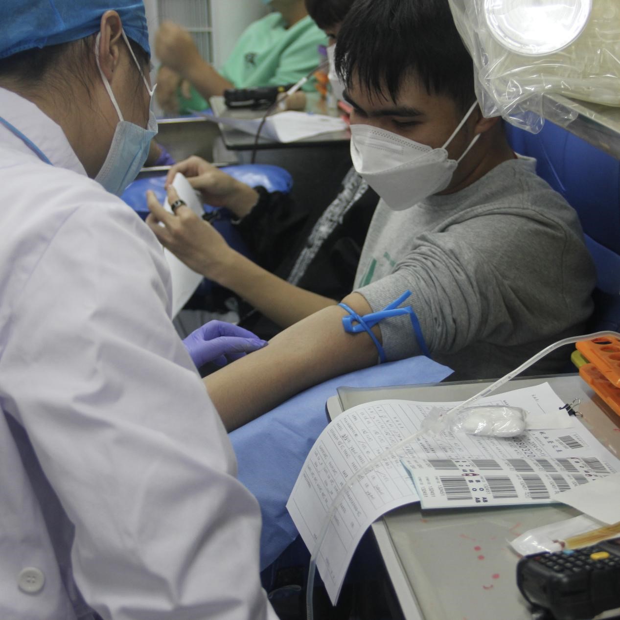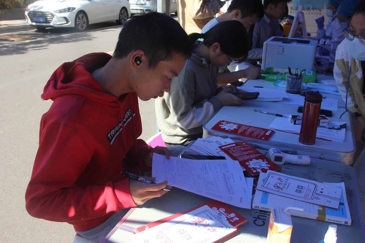 在献血现场,咨询、填表、回答问题、测量血压、化验、采血休息,所有流程都在医护人员和大学生心理健康协会志愿者的指引下井然有序地进行。献血志愿者手握着鲜红的《无偿献血证》,脸上洋溢着快乐的笑容,来自商务贸易学院营销22-1班的小王同学说:“我爱好运动,有一个健康的体魄,在保证我自身健康的情况下,我自愿献血,当护士姐姐告诉了我的血液去向和用在了哪里时,我感觉这是一件很有价值的事情,我觉得自己很棒,希望通过我的爱心温暖更多的人。”