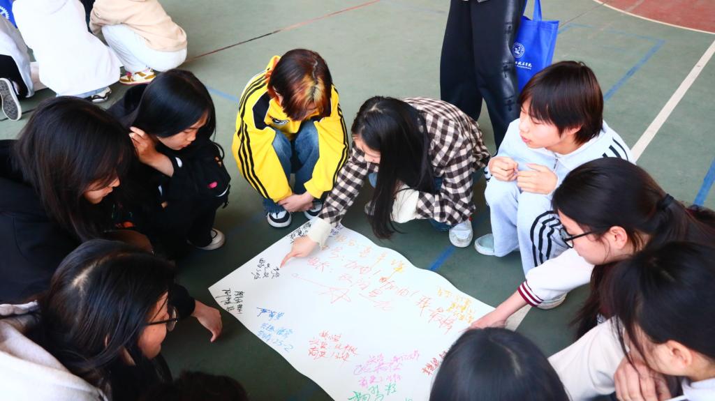 “我们有15个人,大家相互扶着一起抬脚就可以站稳了”、“我们的小组口号是“青青草原,胜者为王,拼搏为先,谁与争锋”、“好开心认识了有趣的你们,以后我们要一起多交流”。3月26日下午,学院体育馆热闹非凡,由学校心理健康教育与咨询中心组织的2023级朋辈队伍“三爱”团体辅导活动正如火如荼地开展。本次活动以“遇见美好,不负青春”人际交往为主题,由专职心理健康教师张秋亮、谢奇担任指导老师,全校大一班级心理委员参加了活动。