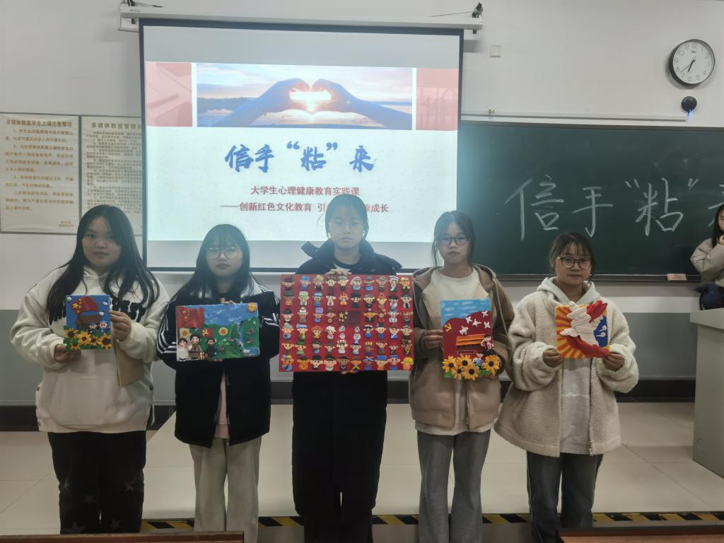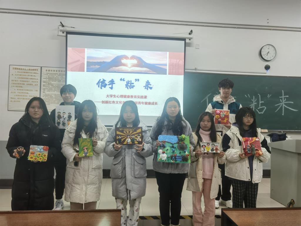 “大家现在看到的是我们小组成员用彩泥塑造的觉醒年代电视剧中的几位“先锋人物”“我们以民族团结一家亲为主题,通过彩泥描绘出了五十六个民族的‘形象照’,想以此表达我们对中华民族团结的认同和支持。”新学期伊始,九游·官方网站经济管理学院辅导员纪文婷,作为我校2023级会计专业辅导员兼该专业心理健康教育课专任老师,以“信手‘粘’来”为主题,召开了一次别开生面的新学期第一次主题班会,为同学们带来了一堂别具特色的心理健康教育课程的实践课,以此帮助同学们放松心情,疏解压力,减轻开学焦虑,也引导同学们进一步传承红色基因,赓续红色血脉,激发学生爱党爱国情怀,释放青春力量,展现青春风采。