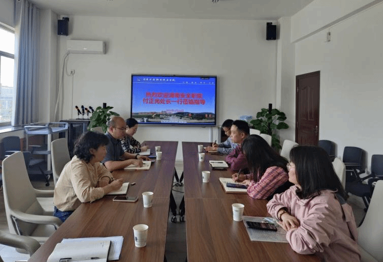 2024年4月23日下午,湖南安全技术职业学院规划与质量建设处处长付正光、副处长彭元辉、质量干事王智萍、规划干事刘柱鸿一行来我校调研交流,发展规划与职业教育研究中心颜浩龙主任、周艳、张莲芳、杨芳出席交流座谈会。