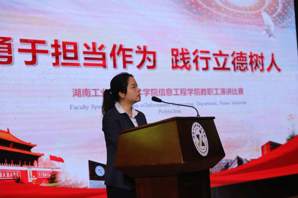 信息工程学院党总支书记彭伟对比赛进行了总结,勉励该院全体教师,要把满腔热情转化为实际行动,把爱国爱校的奋斗精神转化为立德树人的担当作为,立足本职岗位,践行四有好老师标准,积极为学校和学院的发展贡献更多的力量。