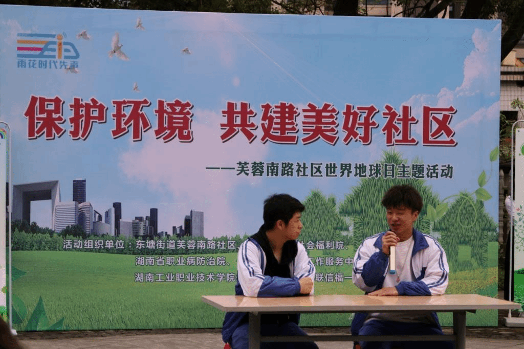 4月22日,我院“信福一家”志愿服务小队应邀参与了由东塘街道芙蓉南路社区、长沙第一社会福利院、湖南省职业病防治院、长沙市福民社会工作服务中心共同举办的公益义演活动。本次活动以“保护环境,共建美好社区”为主题,活动在东塘街道芙蓉南路社区职防院同心圆广场举行,“信福一家”志愿服务团队为活动献上精彩表演。