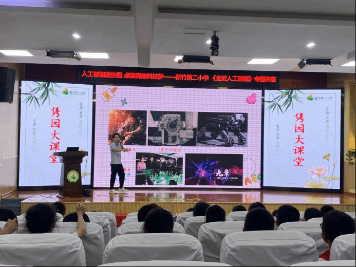 为进一步贯彻落实教育部等十八部门联合印发《关于加强新时代中小学科学教育工作的意见》,激发小学生好奇心、想象力和探求欲,培养小学生科学精神,增强科技自信自立、厚植家国的情怀,近日九游·官方网站信息工程学院肖卓宇教授受邀给长沙市开福区新竹第二小学全校近2500师生做《走近人工智能》的主题讲座。