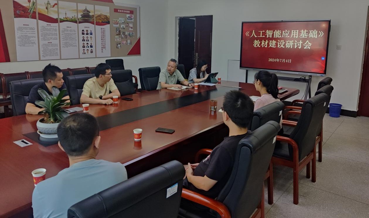 7月4日下午,信息工程学院举办《人工智能应用基础》教材建设研讨会。本次活动由副院长周朕主持,邀请电气工程学院副院长彭湘华、经济管理学院实训教研室主任樊超一起研讨,教材编写组相关教师参会。
