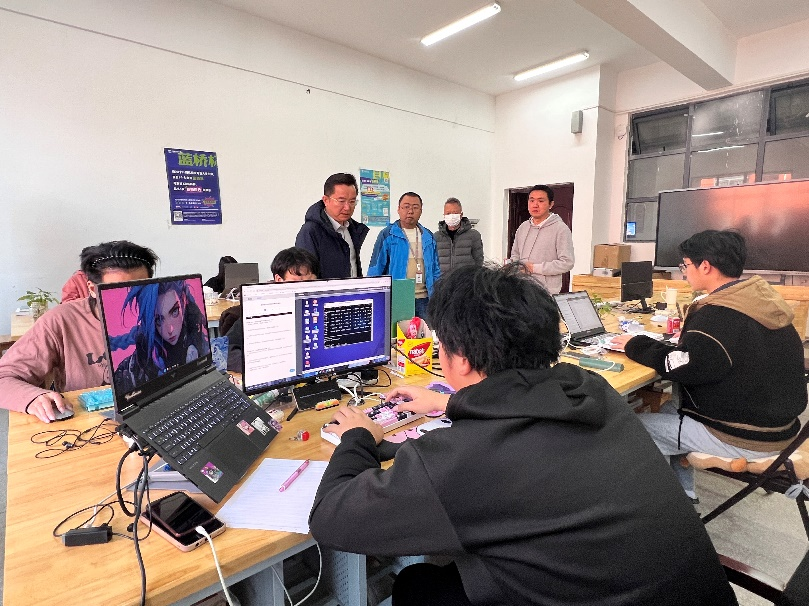 11月27日,院长王世峰带队,副书记盛毅、副院长周朕、李俊成一行再次到各集训点给竞赛选手加油鼓劲,详细了解各个赛项的具体情况和学生的备赛进度,并就相关竞赛工作提出指导意见。