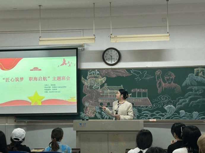2024年10月18日,为了落实“技能成才,强国有我”系列主题活动的通知要求,数媒23-2班在尚善楼1407教室召开“匠心筑梦,职海启航”主题班会。班会全程由辅导员巫统香老师主持,首届全国大学生职业规划大赛金奖获得者楚荞伊同学作为特邀嘉宾与数媒23-2班全体同学参与此次班会。