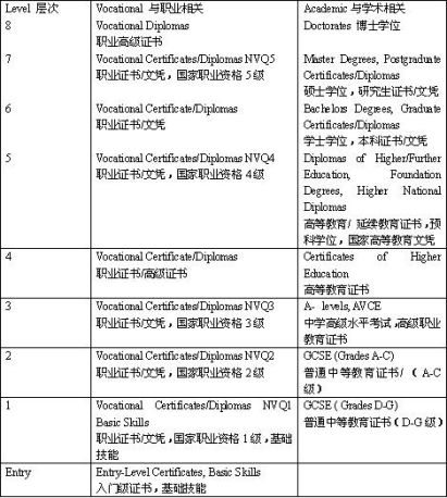 学徒制水平:一直以来,英国学徒制主要提供相当于高中教育层次的2级和3级水平。但是随着对提供更高水平学徒制的需求不断增长,2011年3月英国政府发布了其“增长计划”(Plan for Growth),设定了实现经济可持续增长的路线,而持续扩张的学徒制计划是这些计划的核心。NQF( National Qualification Framework国家资格证书框架)中规定了从入门级到8级的水平及其与学历教育对应的等级。