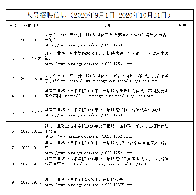 2020年度人员招聘情况公开(2020年9月1日-2020年10月31日)