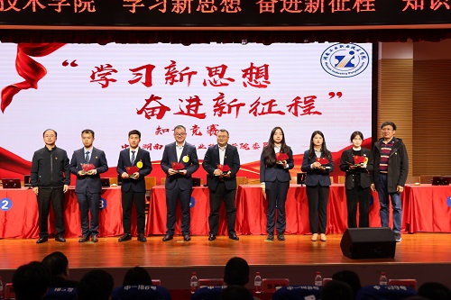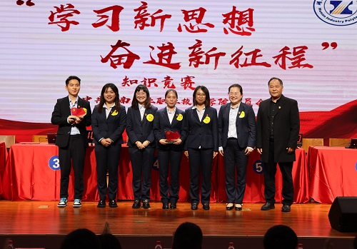 党的二十大召开以来,学校通过“五个百”和“十百千”工程,在全校范围内掀起党的二十大精神学习高潮,让学校学习党的二十大精神蔚然成风。此次知识竞赛活动是“一百场知识竞赛”的总决赛,由学校党委主办,宣传统战部、组织人事部、纪检监察处、团委、马克思主义学院联合承办。各党总支组织党员教职工进行知识竞赛测试与知识竞赛复赛活动后,推选3名教职工党员组成代表队参加学校知识竞赛决赛。