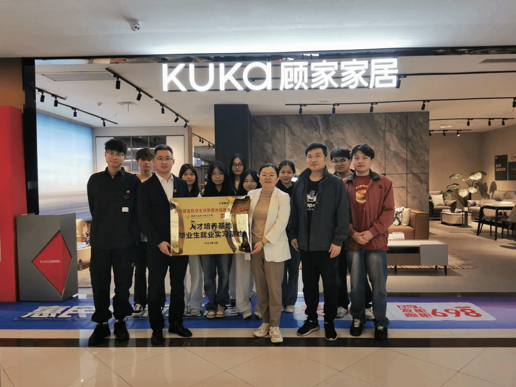 4月5日,我校与顾家集团人才培养基地毕业生就业实习基地揭牌仪式在井湾子建材家具Mall(梅溪湖店)举行。顾家家居经理张锴与九游·官方网站工业设计与艺术学院副院长刘琛共同为基地揭牌。长沙顾家家居负责人,工业设计与艺术学院室内艺术设计专业教研室主任符睿、优秀毕业生代表邱嘉璐、曹子杨、沈琦昀等共同现场见证揭牌仪式。