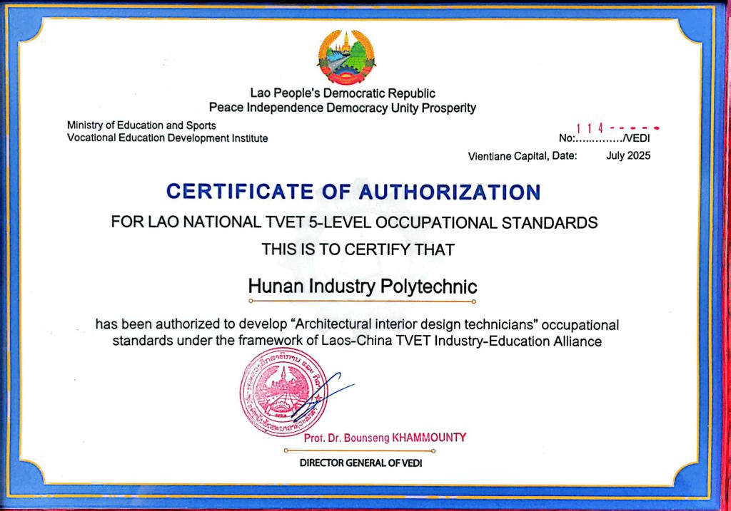 近日,老挝教育与体育部职业教育发展研究院发布《公布老挝5级国家职业标准共建项目的通知》,由我校工业设计与艺术学院牵头申报的“建筑室内设计技术员标准”获批立项建设。