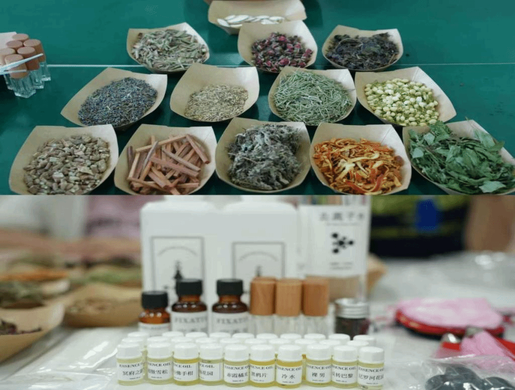 本活动由放松冥想、手工制作、个人分享三部分组成。活动伊始,赵芳老师详细讲解了香水和香囊的起源、种类、作用及功效,她向同学们重点介绍香氛疗愈的历史渊源以及现代科学对其心理与生理调节的功效。听完讲解,同学们跃跃欲试,迫不及待地挑选心仪的香囊和香水原料,全身心投入到香氛创作过程中。