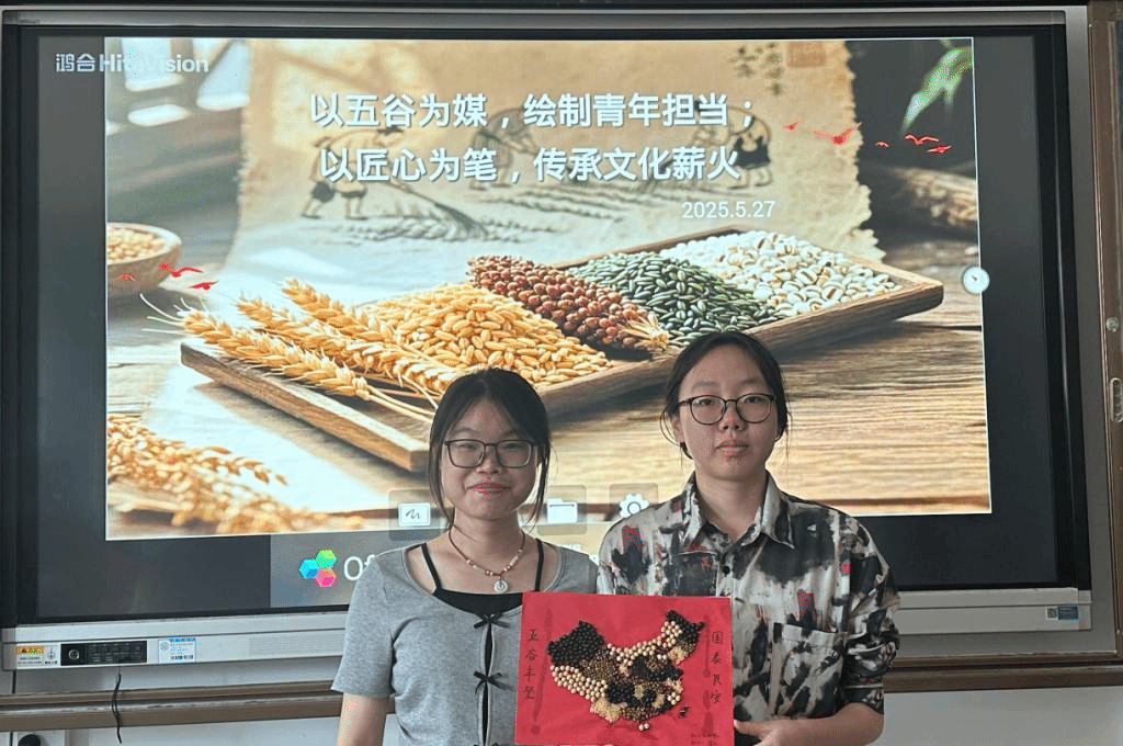 他们或独立构思,或小组协作,用红豆勾勒相思、以绿豆点缀生机、以黑豆增添层次、以黄豆渲染色彩,精心创作出《我的祖国》《吉祥五谷画》等10余幅五谷拼贴画。这些作品不仅构图生动、充满创意,同时也充分体现了学生对大自然的热爱及对生活的感悟。
