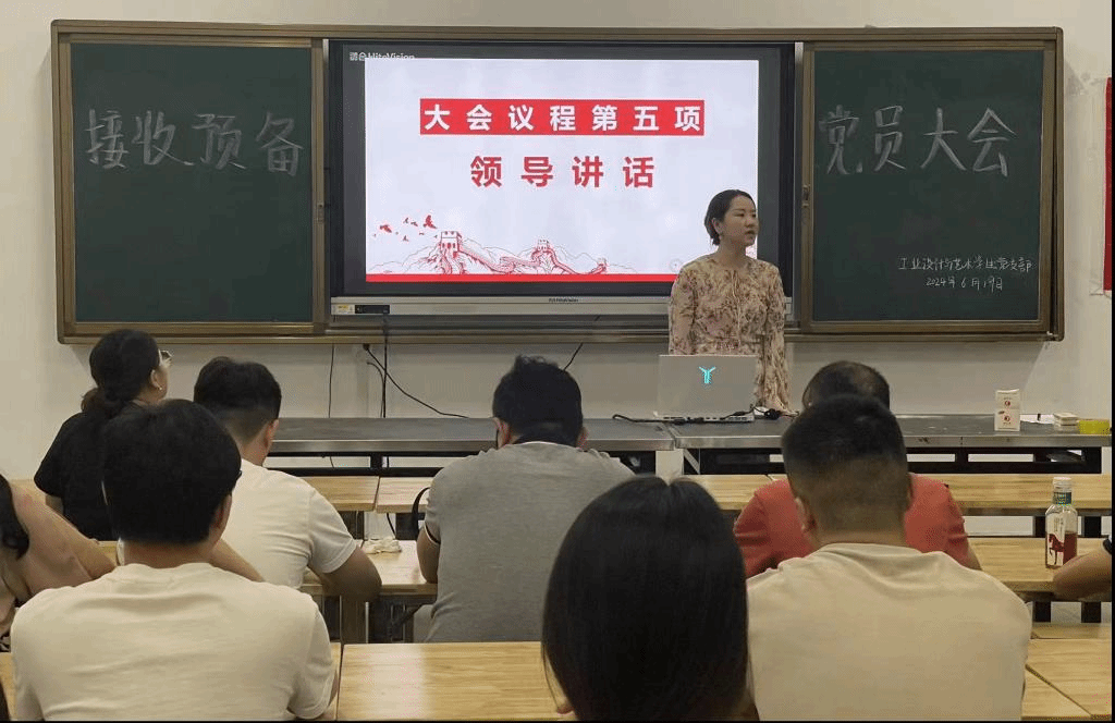 本网讯 2024年6月18日,工业设计与艺术学生党支部在匠心楼召开预备党员接收大会,讨论接收颜琪、阳赛等14名发展对象为预备党员问题。大会由工业设计与艺术学生党支部书记段依伊主持,党总支副书记杨甜、党务办主任黄武出席,全体党员师生参加。