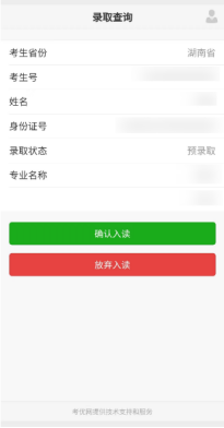 第一步:考生查看本人信息及预录取专业名称,确认后进入第二步录取通知书邮寄信息确认。
