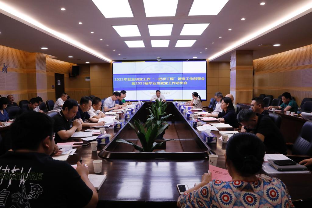 招生就业处处长王俊总结2022届毕业生就业工作,对2023届毕业生就业工作提出了相关部署。招生就业处副处长喻品风对2022年就业创业“一把手工程”督查迎检工作作了详细的说明和要求。