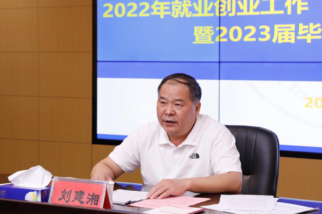 刘建湘在会上对学校就业工作提出要求:要提高站位,坚持落实就业“一把手”工程,构建“网格化”管理模式,建强“大就业”工作队伍;要协同创新,完成就业工作“规定动作”的同时要创新“自选动作”,不断拓宽渠道促就业;要聚焦重点、多措并举抓好抓实毕业生就业工作,压实工作责任制,确保学生真就业,就真业。