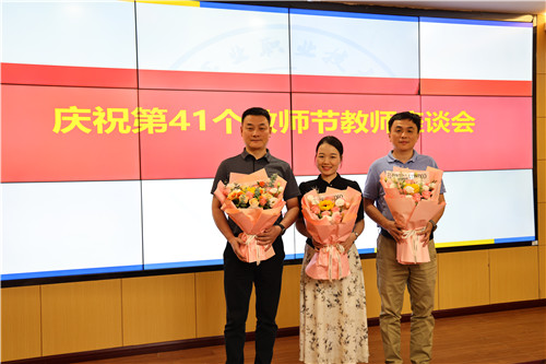 “湖南省优秀思想政治工作者”汤灵,从教三十年教师代表曾红艳,骨干教师代表张凯、王志辉、唐健豪等敞开心扉、真情交流,分享了在教书育人、科研竞赛、管理服务等工作上的经历感悟,言语间满是对教育科研事业的执着坚守和对学校的深切热爱,并积极围绕教育教学、人才培养、专业建设、产教融合等方面为学校发展建言献策。青年教师代表李芳佳、宁越纷纷表示,将在今后的工作中将以前辈们为榜样,继续坚守教育初心,不断提高教书育人本领,为教育强国建设贡献力量。