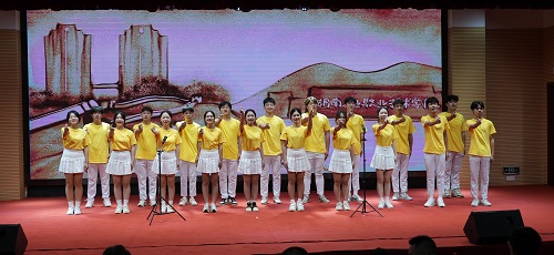 “打开校史陈列馆那扇厚重阔大的门,是湖湘大地解放前兴工的浩浩征程。”“爱国、求知、创业、兴工,从长沙到新化,从新化到长沙,我们努力构建职业教育的生动样本。”8位新入职教师,以《跋涉》为主题,通过朗诵的形式讲述了“楚怡”人与时代同向同行走、奋斗拼搏的故事。