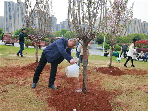 挥锹铲土、扶树正苗、浇水培土……参加活动的党员同志在英才园蜿蜒小路旁干得热火朝天,种下一株株樱花树,期待来年来“樱花园”赏花。继去年党务工作党总支部在此处种植樱花树10余棵以来,今年再次种下10余棵,以期打造成片的“廉政先锋林”。